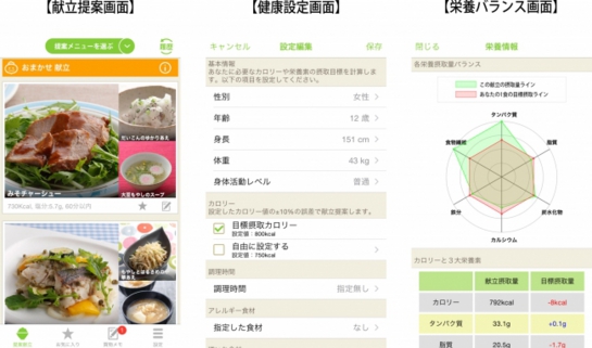 これにより、利用者は子供の情報を健康情報に設定する事で、子供に必要な各栄養素の摂取目標を把握しながら、栄養バランスの良い献立提案を受け取ることができるようになる。また、栄養素の摂取目標量の計算を、厚生労働省の「日本人の食事摂取基準」(2010年版)から「日本人の食事摂取基準」(2015年版)に変更し、最新の摂取基準を適用した。