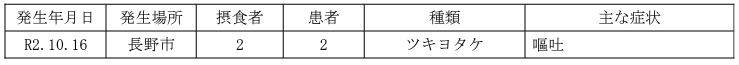 【参考】令和2年~3年の長野県内における有毒きのこによる食中毒発生状況
