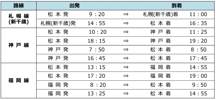 運航ダイヤを公表、今年も松本⇔札幌線(丘珠)が