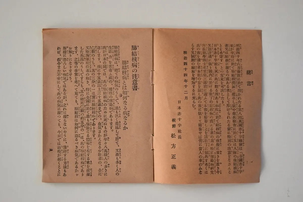 【北里柴三郎編纂『肺結核の注意書』(明治44年日本赤十字社発行)】
