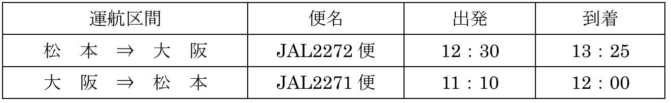 (参考)日本航空(株)信州まつもと空港⇔大阪国際空港(伊丹)線について
