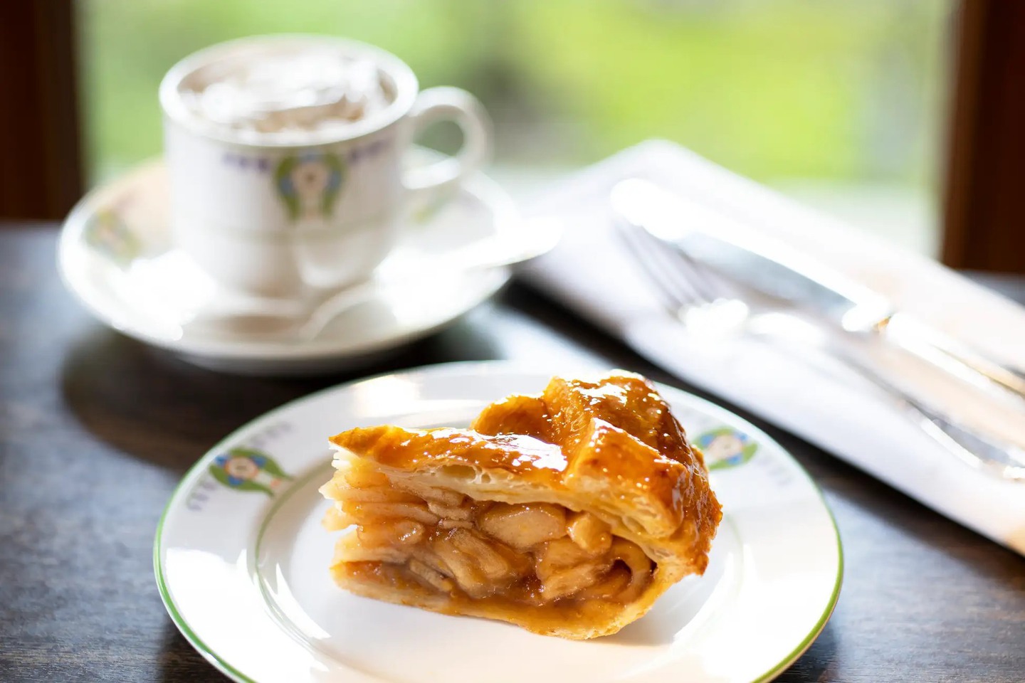 ホテルにご宿泊の方のみならず、軽井沢を散策される方々の憩いの場として、多くのお客様に愛されてきた「カフェテラス」。アルプス館の1階正面に位置し、外光溢れる明るい店内や、爽やかな風が流れる屋外テラスで、優雅なひとときをお過ごしいただける。