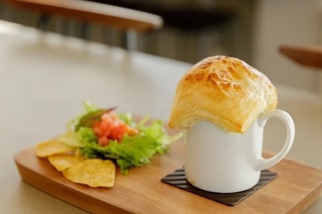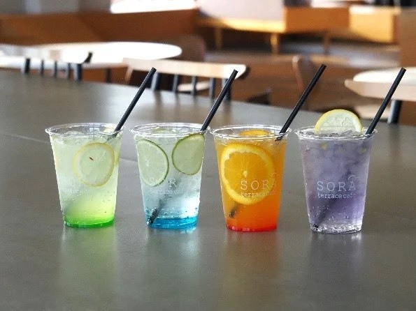 室内でゆったりとくつろぎながら景色を見渡せる「SORA terrace cafe」には、ソファースペースをはじめテーブル席やカウンター席などの座席がある。カフェ店内では、雲海にみたてた「雲海パイ包みスープ」や真っ白な雲をイメージした「雲海クワトロ•フォルマッジ」など、オリジナルメニューをお楽しみいただける。また、空をイメージした「スカイソーダ」や長野県産のブドウを使用した「スムージー」、オリジナルブレンドコーヒーなどのドリンクメニューも多数用意している。