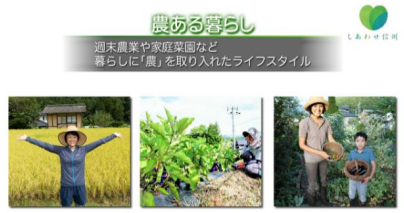 「農ある暮 らし」の魅力を伝える動画とガイドブックの活用方法は、県ホームページの以下のサイトで公開している。https://www.pref.nagano.lg.jp /noson /nouarukurashi-tools.h tml