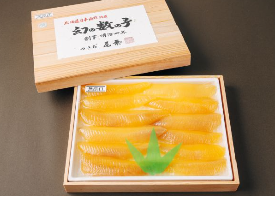 近年の鰊(にしん)の漁獲量減少に伴い、日本国内で出回る数の子は海外産が全体の95%を占めており、国内産は5%しか流通していない。その貴重な国内産の数の子を、さらに色・形・大きさなどの厳しい条件で選別。丁寧に手間をかけて厳選された数の子は、流通する全体量のわずか1%未満しかなく、その希少さから「幻の数の子」と称されている。