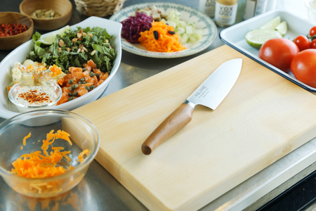 軽い使い心地と少しの力ですっと切れる鋭い切れ味、ナチュラルな雰囲気と「ついつい、いつも手にとってしまう」包丁を目指した。大切に使い続けたくなる、毎日に“ちょうどいい”包丁だ。
