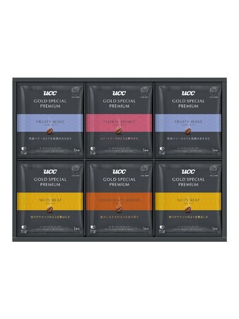 長年培ってきたUCCのブレンドや焙煎技術で、これまでとは違う味わいを実現している『UCC GOLD SPECIAL PREMIUM』。新たなコーヒーの楽しみ方を提案するプレミアムブランドのアソートギフトセットを3種類用意した。ギフトならではのプレミアム高級感のある化粧箱とリーフレットを同梱している。