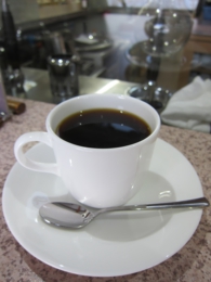 白髪のおばあさまもこのブレンドコーヒーを飲んでおられ、私もその雰囲気に誘われてブレンドコーヒーを注文した。予想を遥かに上回る味わいに感動し、もう逸品のコーヒーの「発芽コーヒー」(350円)を注文した。「発芽コーヒー」はコーヒー生豆を発芽加工して「発芽生豆」し、乾燥させて「発芽焙煎豆」にしたものだ。