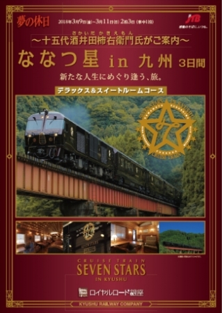 JTBグループの(株)JTB首都圏(東京都品川区、池田浩代表取締役社長)で高品質旅行商品を企画•実施するJTBロイヤルロード銀座は、九州旅客鉄道(株)が運行している豪華寝台列車「ななつ星in九州」の1泊2日コースに乗車する国内旅行商品を1月26日(金)に発売する。