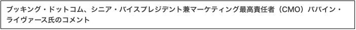 「旅を通じて夢を叶えたり新しい体験を得たりすることで、私たちの人生はより豊かになる。世界中の宿泊施設のみならず旅先に関する情報やアドバイスを提供することで、世界のどこへ行こうとも、その土地ならではのものに触れるチャンスを掴み取れるよう、我々は人々の背中を押している。業界の革新者であるブッキング•ドットコムは、最新技術を駆使して旅の障壁をなくし、世界を体験する自由を人々に与える方法を常に模索している。今回のiliとのコラボレーションは、行き先や目的に関わらず、すべての旅をより深いものにすべく尽力する我々のミッションを体現していると言えるでしょう」