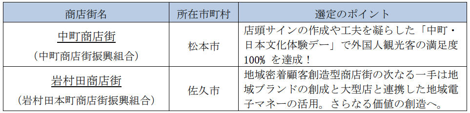 「はばたく商店街30選」に選ばれる! 中町商店街(松本市)、岩村田商店街(佐久市) 中小企業庁が全国の商店街から選定する |