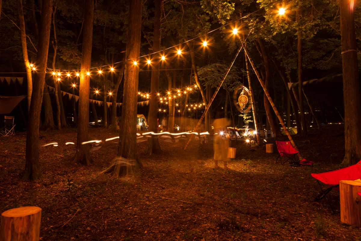 夜の森に1日限定で設えた特別な映画館がオープン。野外映画フェス「夜空と交差する森の映画祭」を手がけるサトウダイスケ氏*のセレクトによる映画を上映する。ランタンを持って夜風を感じる幻想的な映画鑑賞に出かける。