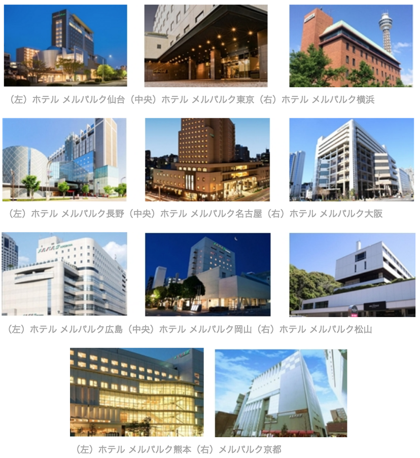 ■対象施設:メルパルク全11施設(ホテル10施設、コンベンションセンター1施設<京都>)(仙台、東京、横浜、長野、名古屋、大阪、広島、岡山、松山、熊本、京都)