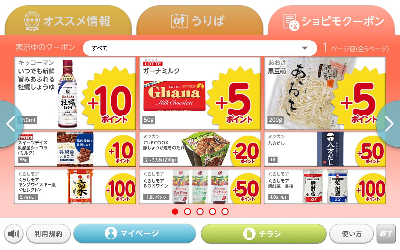 長池店ではブルーカード会員限定として、「ショピモ」内のキャンペーンやクーポンを利用することでブルーカードポイントを獲得することができる。