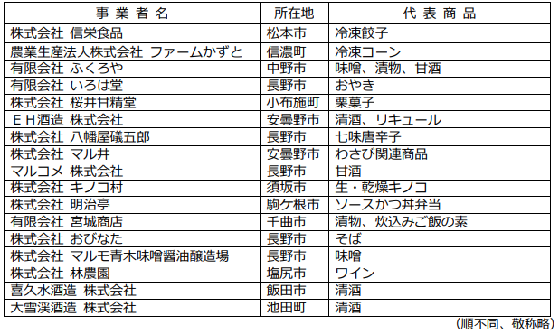 開催店舗は明治屋シンガポール、開催期間は10月19日(金)~28日(日)の10日間、長野フェアに参加する下記事業者は、店頭特設会場においてシンガポールのお客さまに自社製品のプロモーション活動を行う。