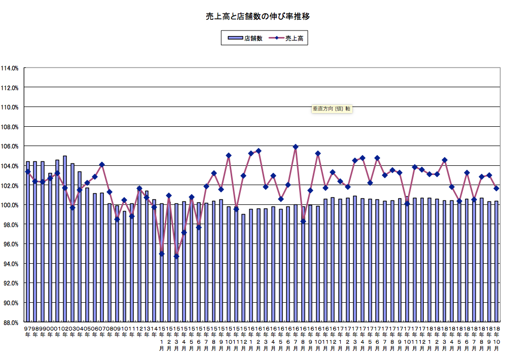 10月の全体概況は日曜日が1日少ない曜日回りであったが、比較的天候に恵まれたことや、2週続けて週末に台風の上陸•接近があった前年と比べ、客数は堅調に推移し、売上げは101.7%と26ヵ月連続して前年を上回った。