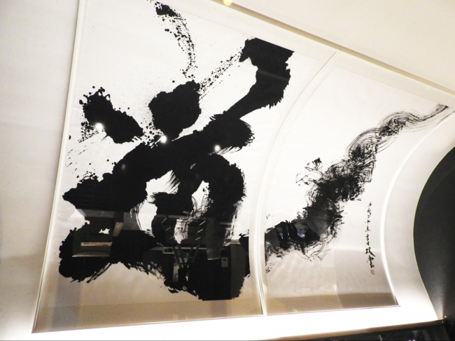 一番お客様にインパクトを感じていただけるのは、なんといっても1階のラウンジとフロントだ。「和箔『蔵』」に入ってすぐに目を惹くのは、NHK大河ドラマ「天地人」など数々の題字を手掛け、メディア等でも活躍されている書道家•武田双雲氏の書「道」。日本文化のなかでも「書」をコンセプトにしている「和箔『蔵』」に相応しい約4m×3mの大判作品だ。また畳敷きの小上りには床の間もあり、日本建築の凛とした雰囲気が味わえるようデザインされている。