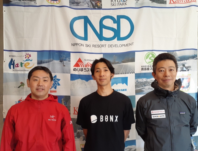 左から 日本スキー場開発の鈴木、BONXの宮坂氏、ウェブインパクトの高柳氏