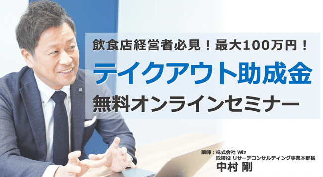 飲食店経営者様必見!『テイクアウト助成金解説 オンラインセミナー』を5月14日(木)より開催! 無料で参加可能(Wiz) |