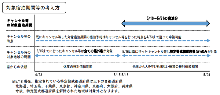 (2)キャンセル等の対象宿泊期間は5月16日(土)から5月31日(日)までの宿泊分