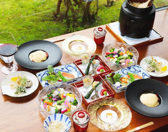 お食事は【月ヶ瀬旅館 雲風々】の副料理長が手掛ける、駿河湾の海の幸と伊豆山の山の幸をふんだんに使った創作和会席料理を提供する。