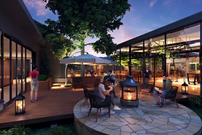 宴会場利用者専用のバンケットテラスを新設。屋内にはコワーキングスペースや打合せスペースとして活用できるカウンターテーブルを配置、また屋外のテラス席では、青空の下でのオフサイトミーティングや、アフターMICEとして炎を囲んで語り合うことができるようファイヤープレイスも設ける。安全に人々が集い、末永いコミュニケーションが継続していくよう交流の基点を目指す。施設名称の「KURUMI」は、長野県の名産品でもあるクルミに由来している。
