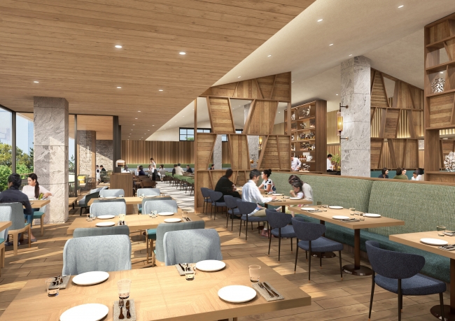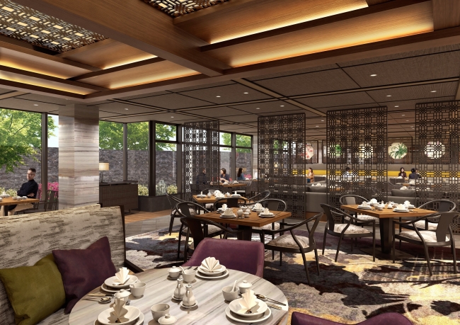 ホテルのレストラン機能を集約し、2FはALL DAY DINING LOUNGE/BAR、1Fは中国料理のレストランを新設する。施設はバリアフリー化することでお客さまの利便性も向上した。