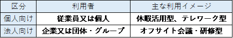 オフサイト会議・研修型:リゾート地や温泉地などで実施するミーティングや研修などのグループワーク