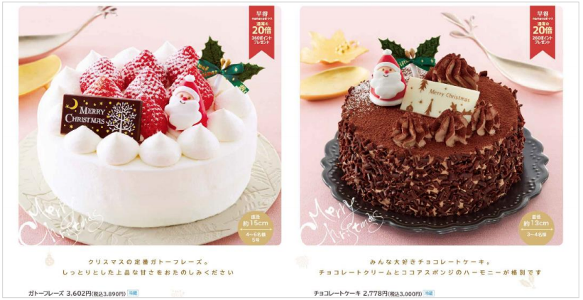 今年はご自宅でご家族やご友人と過ごされる方が、例年より増えると予想されている。またクリスマスのようなイベントシーンでは、手作り料理ではなく様々ところで販売されているお料理やお惣菜を購入される方が増えている。さらに今年もクリスマスが平日のため、ケーキやお料理を一か所でまとめて購入したいニーズがあると考えている。