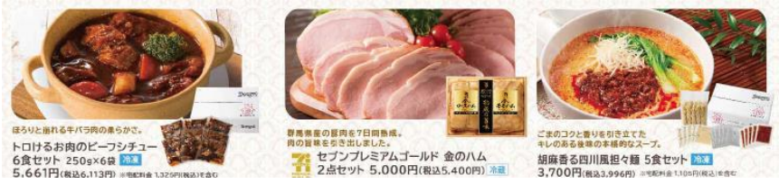 新年を彩るおせちは、セブン&アイグループ限定の2種類を用意。産地を限定した特選素材を使用するなど、ひとつひとつの素材にこだわった伝統的な祝い肴やおせちの定番が勢ぞろいした本格的な品だ。また、贈り物にもぴったりな越後仙見米こがねもちや、デニーズ人気のビーフシチューや担々麺も用意した。
