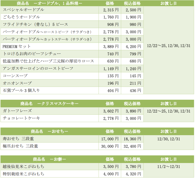 クリスマスケーキやオードブル年末 年始のお餅やおせち等の冬の予約商品 10月1日から予約開始(デニーズ) |
