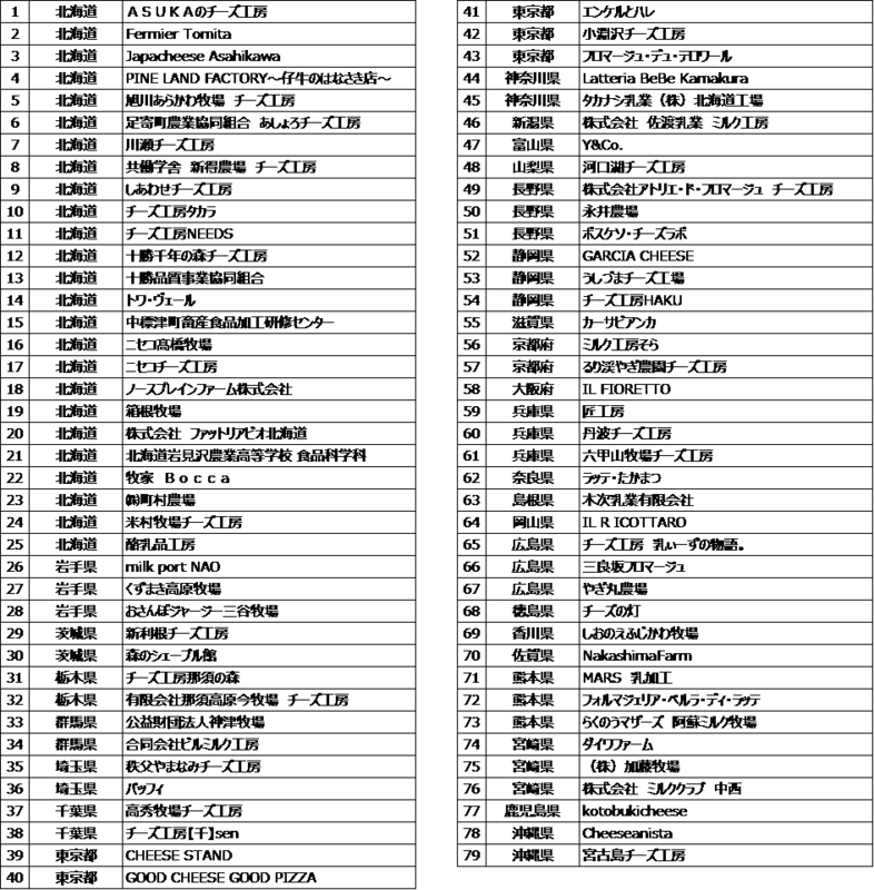 ■ジャパンチーズアワード2020出品者一覧(順不同、9月30日時点)※出品者は変更になる場合がある。