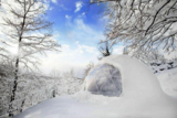 大自然との一体感と快適性を両立させたかまくら型のドームテントが雪山の特別なひとときを演出する。受付や