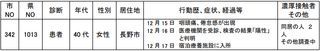 <12/17>長野市内において342例目の新型コロナウイルス感染者が確認