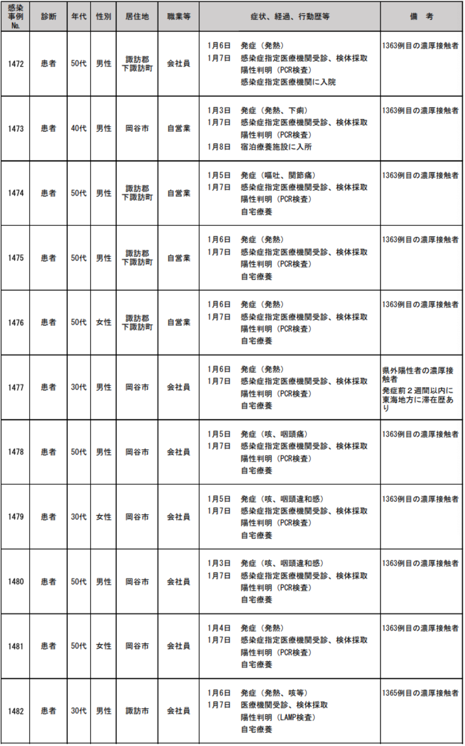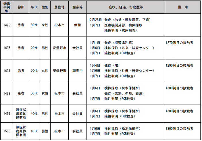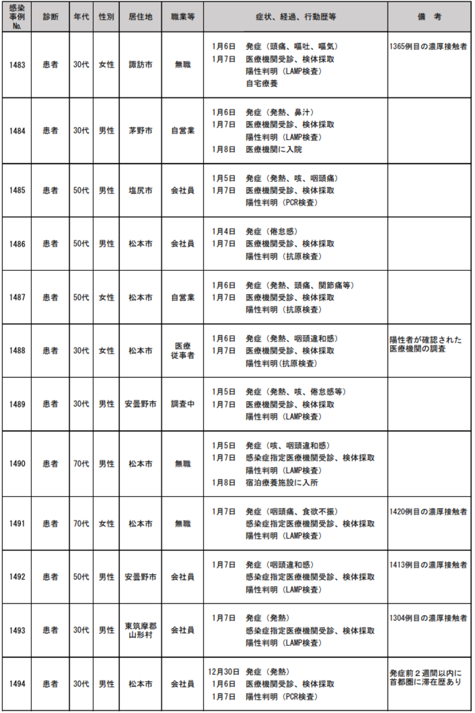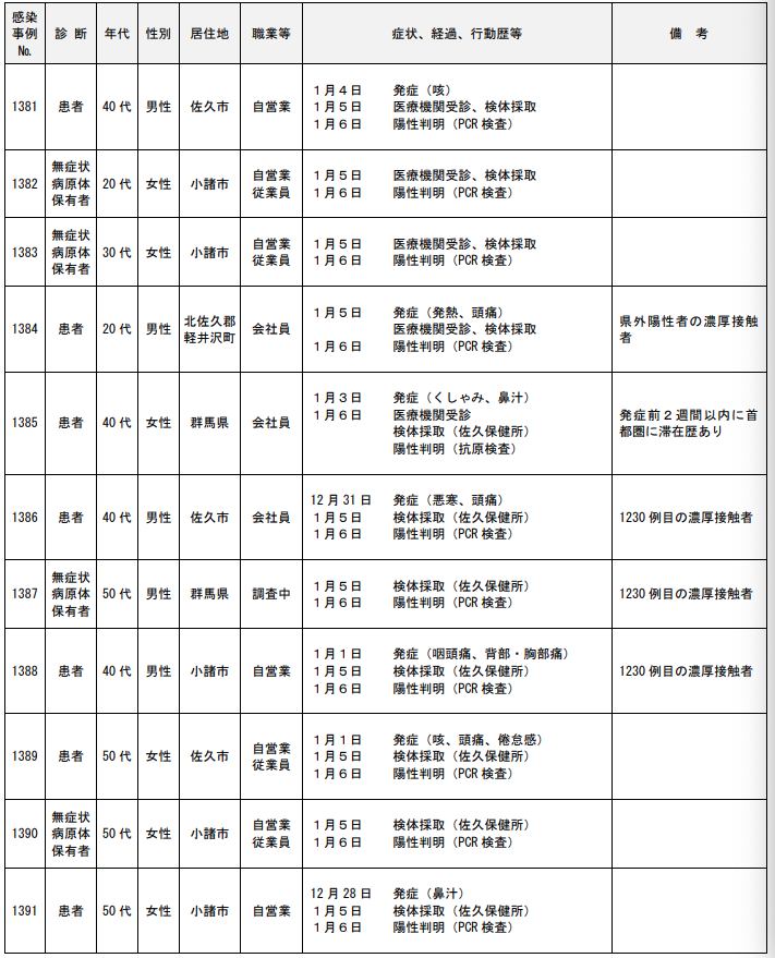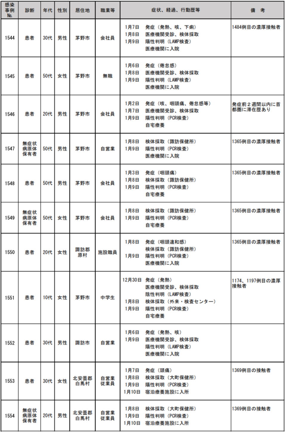 新型コロナウイルス感染症 長野県内の状況について(令和3年1月10日 16:00時点)