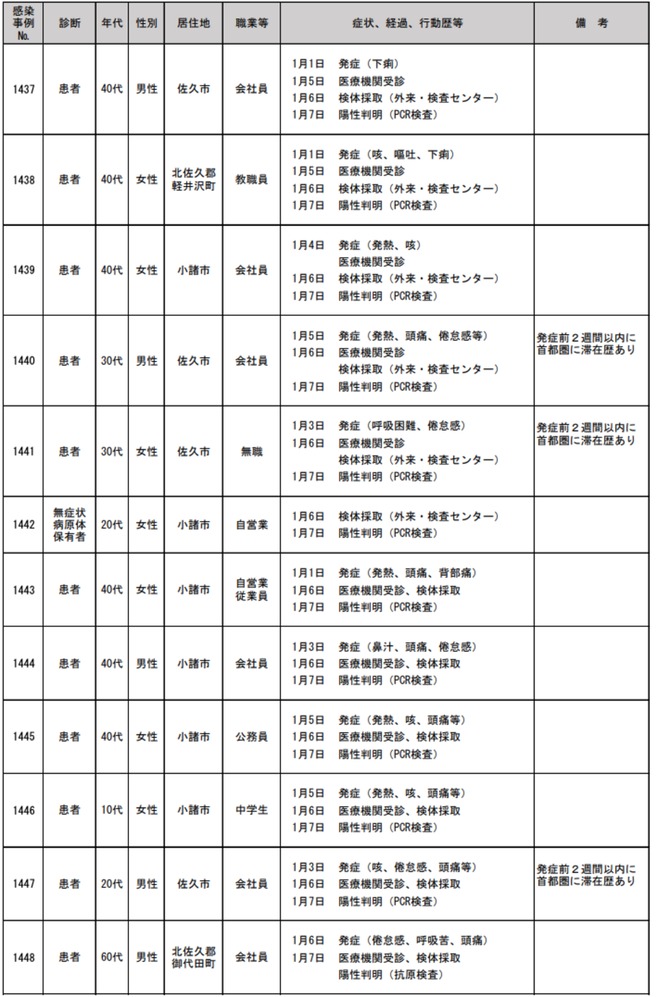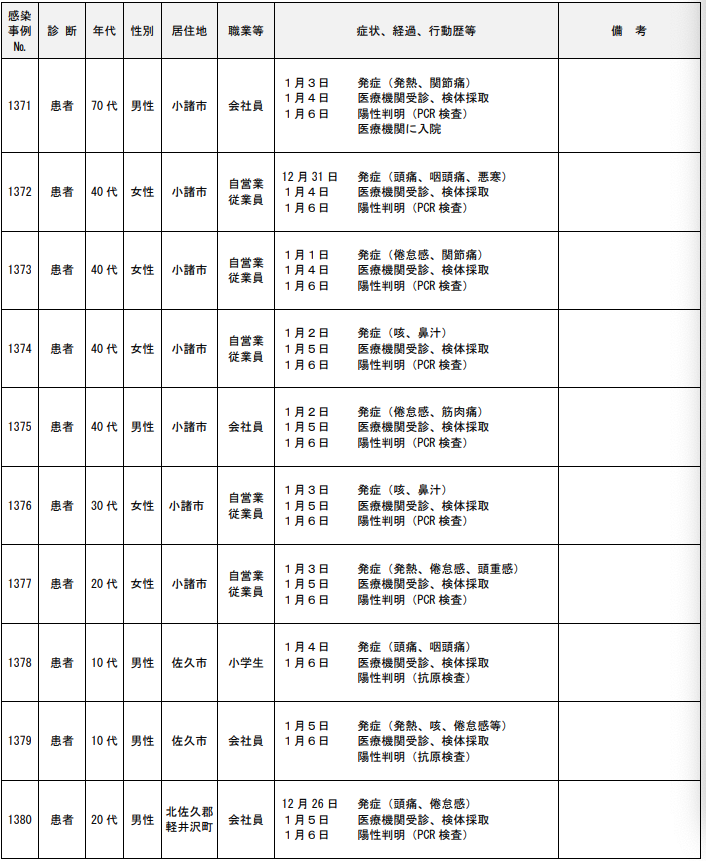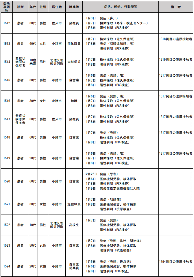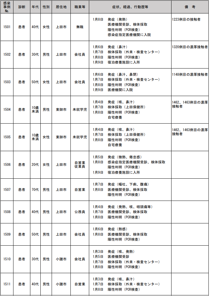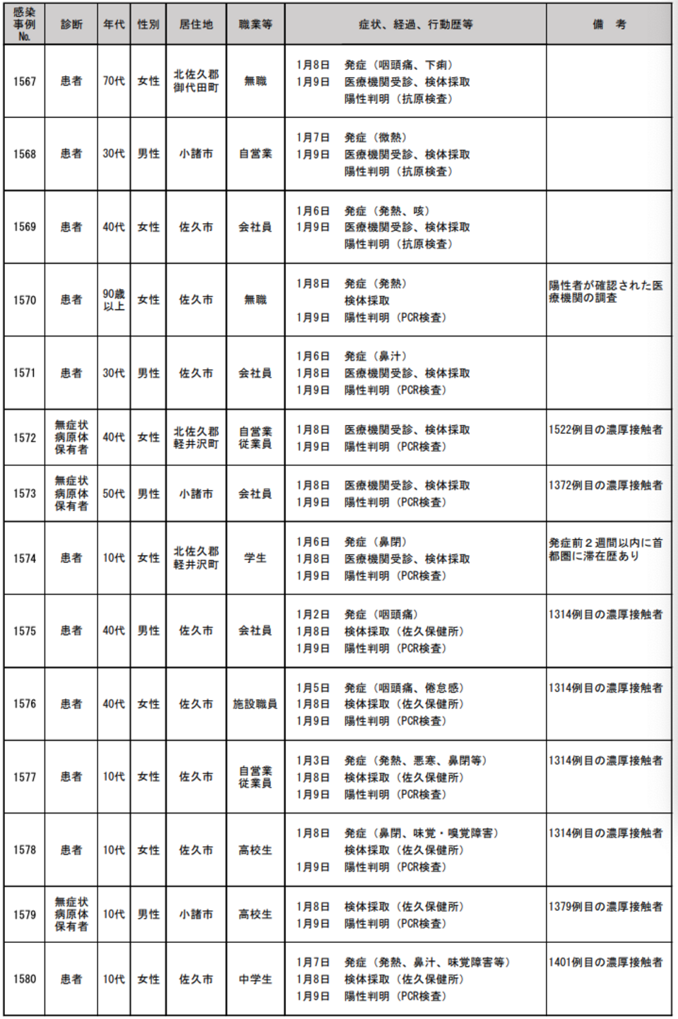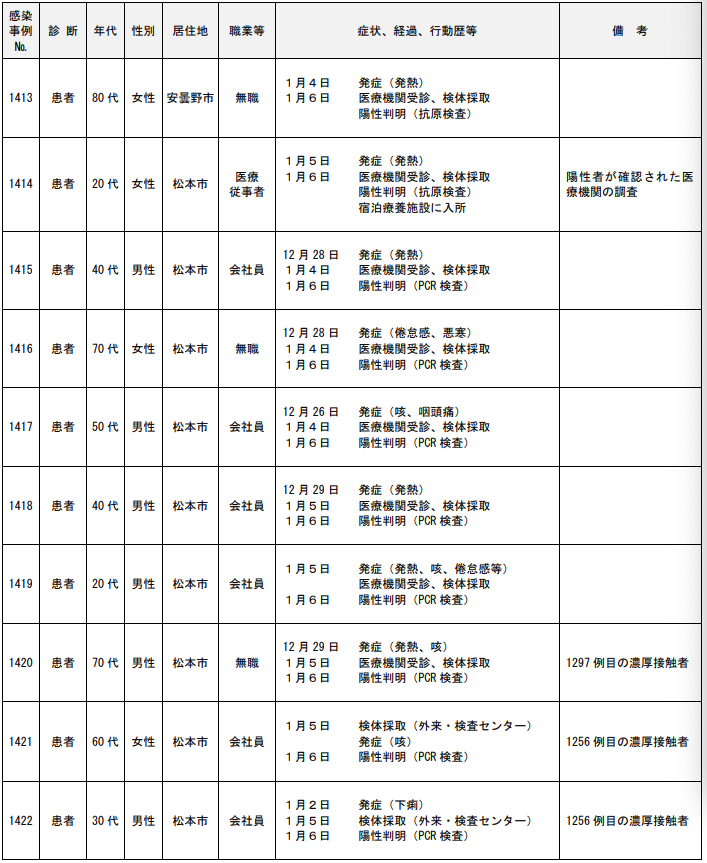 新型コロナウイルス感染症 長野県内の状況について(令和3年1月10日 16:00時点)
