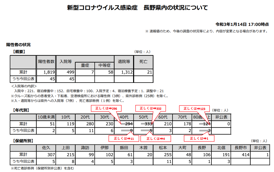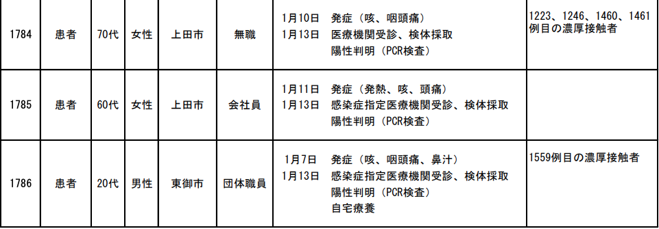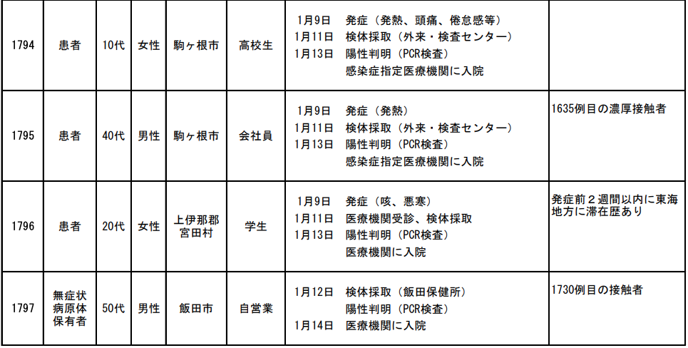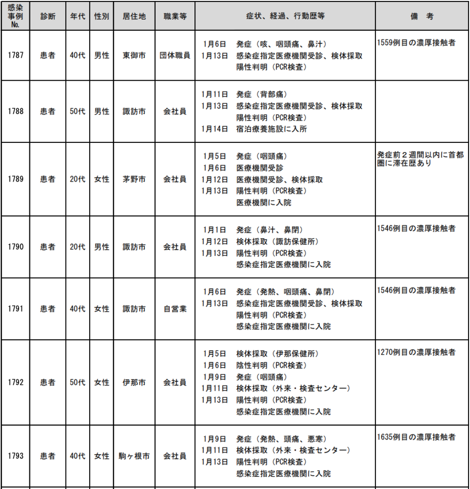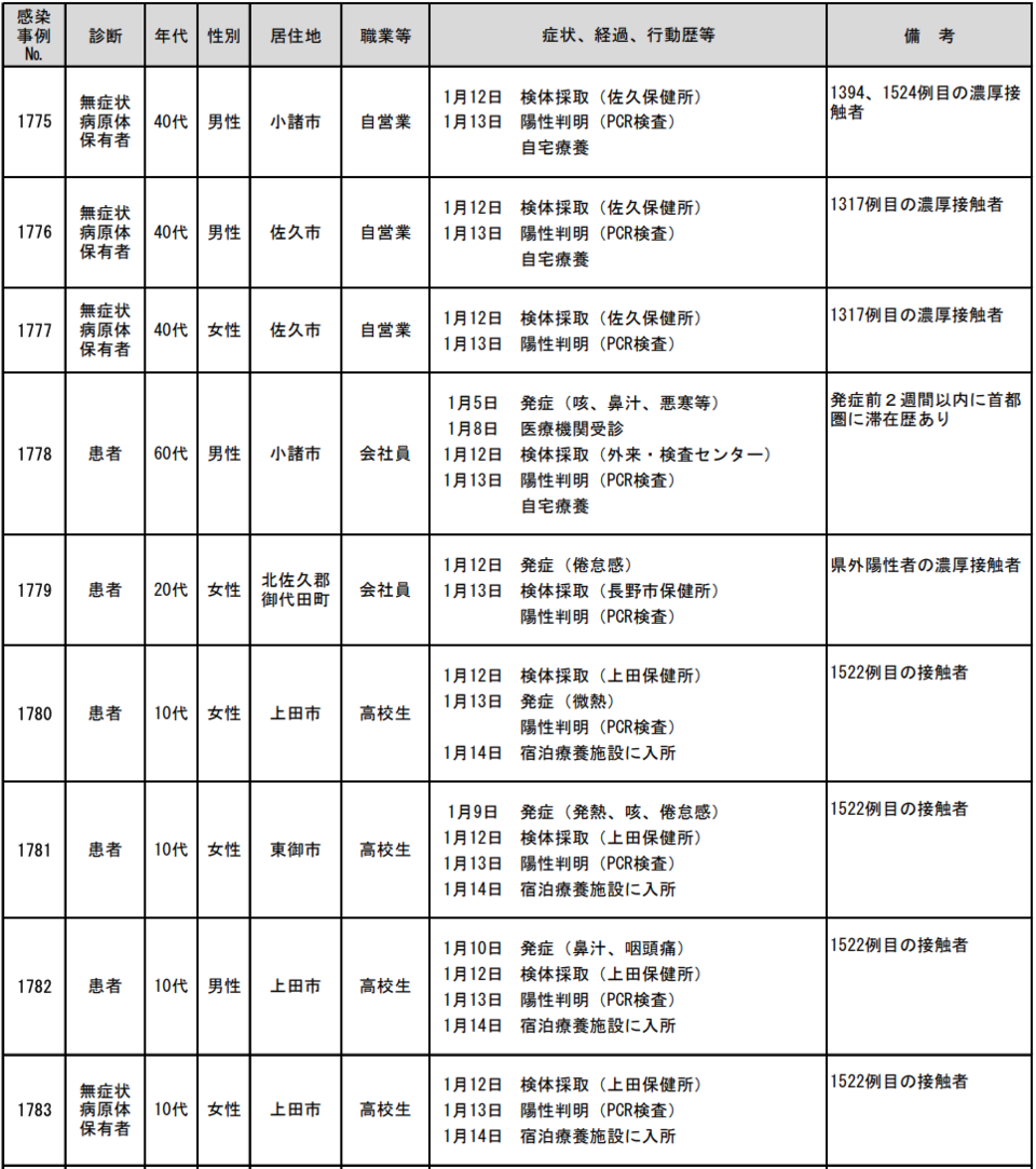 新型コロナウイルス感染症 長野県内の状況について(令和3年1月14日 17:00時点)