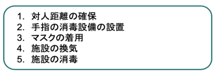 ・定期的な換気、飛沫防止対策、手指消毒徹底の実施