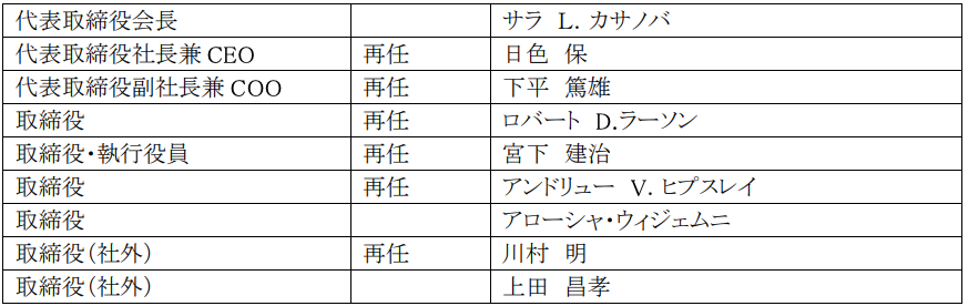 <今回の異動により同社の取締役は以下の通りとなる予定>