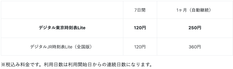■デジタル東京時刻表Liteご利用料金について