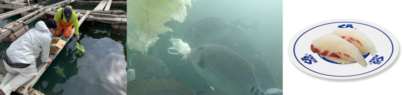 また、海藻を主食とすることから磯焼け(※)の原因とされ、駆除対象となるなど、海の“厄介者”扱いされているニザダイの商品化を実現。身の部分に独特のにおいもあり、商品化にはハードルがあった。そこでくら寿司は神奈川県水産技術センターの「ウニのキャベツ養殖」をヒントに、紀州日高漁協(和歌山県御坊市)と協働で2020年9月から養殖を開始。廃棄予定のキャベツを与えることでそのにおいが軽減され、本来ニザダイが持つ良質な脂のりや身質をおいしく味わえる商品になった。※水産物の産卵•育成に重要な役割を果たす、海藻が大規模に消失する現象。
