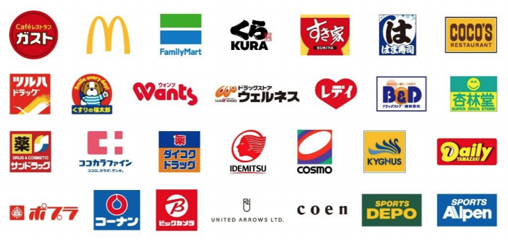 これにより利用者は、「ガスト」「バーミヤン」「ジョナサン」「しゃぶ葉」「夢庵」「藍屋」などの対象店舗にて、「楽天ポイントカード」もしくは「楽天ポイントカードアプリ」を提示すると、利用金額に応じて「楽 天ポイント」を貯めることができ、支払い時には貯まったポイントを使用することも可能となる。