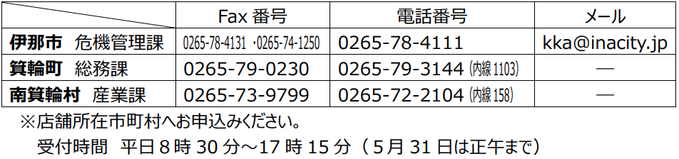 伊那市、箕輪町及び南箕輪村内の飲食店に 勤務している方を対象に、新型コロナウイルス 感染症のPCR検査を実施 |