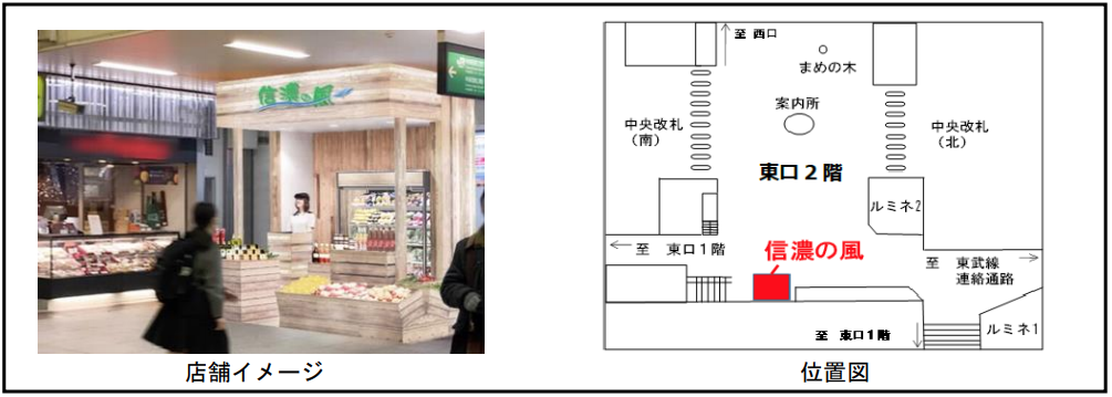 (株)ステーションビルMIDORIでは、生産者の皆様と長野県の農業の活性化を目的とした新たな協働の事業の一環として、県産農産物を産地から直送して販売するマルシェ「信濃の風」を、JR大宮駅構内に開業する。長野県では同社とタイアップし「信濃の風」において、川中島白桃等の地域を代表する農産物や加工食品 などの県産品のPRや交流人口の拡大に向けた観光情報など、本県の魅力を継続的に発信する。