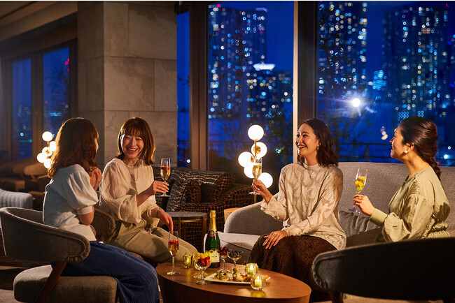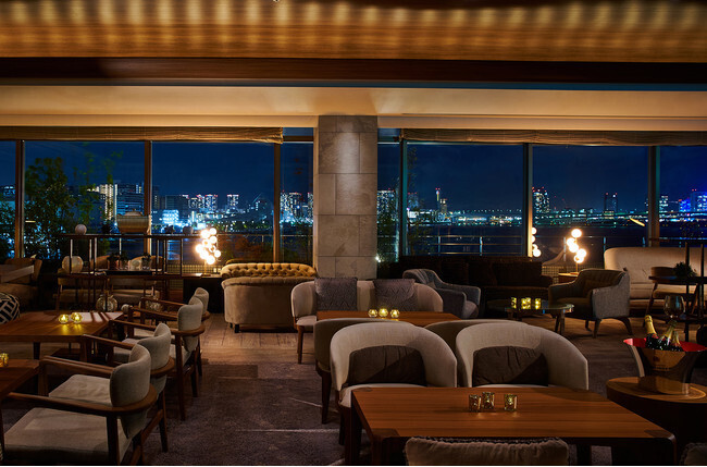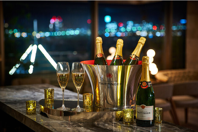 東京湾の美しい夜景を臨むラグジュアリーなラウンジと 「テタンジェ ブリュット レゼルヴ」