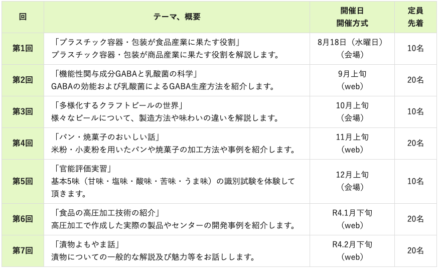 第1回の「プラスチック容器•包装が食品産業に果たす役割」の参加者を募集しており、皆様のご参加をお待ちしている。開催テーマ•日程等はそれぞれ事前申し込みが必要だ。