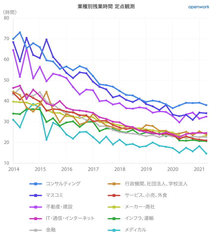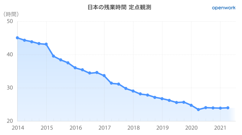 OpenWork 働きがい研究所 「日本の残業時間」定点観測データ <2021年4~6月集計>を発表 |
