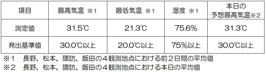 ※1 長野、松本、諏訪、飯田の4観測地点における前2日間の平均値