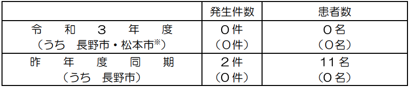 <令和3年度長野県内(長野市•松本市を含む)における食中毒発生状況(現在まで)>