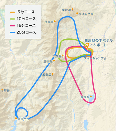 東京都心からおよそ70分で白馬へ到着するヘリコプター直行便を販売を行い、白馬エリアへ訪れる観光客の方々に短時間でアクセスしやすい移動手段を展開していく。環境省と協力し「国立公園オフィシャルパートナーシップ」の基、中部山岳国立公園において「空から楽しめる国立公園」としてのブランディングを実現し、国立公園の魅力発信や利用客の増加を目指していく。